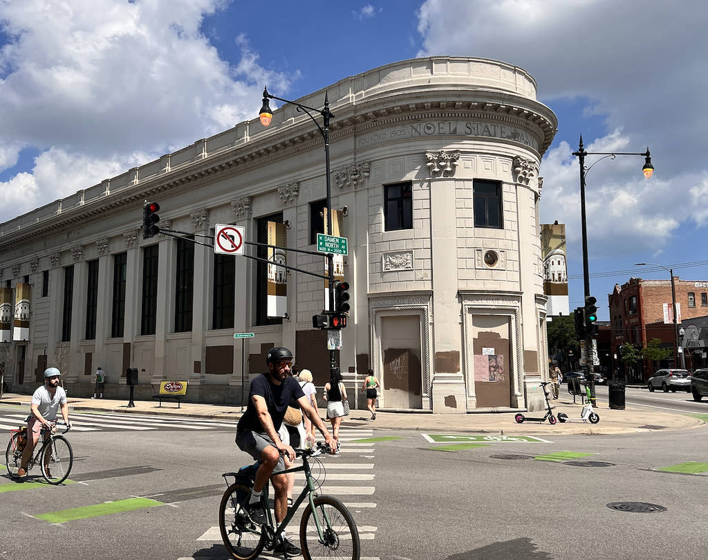 El edificio Noel State Bank es conocido por su elaborado interior art déco. Anteriormente ocupaba el espacio un Walgreens, que se hizo famoso por su singular «Vitamin Vault», un banco reconvertido.