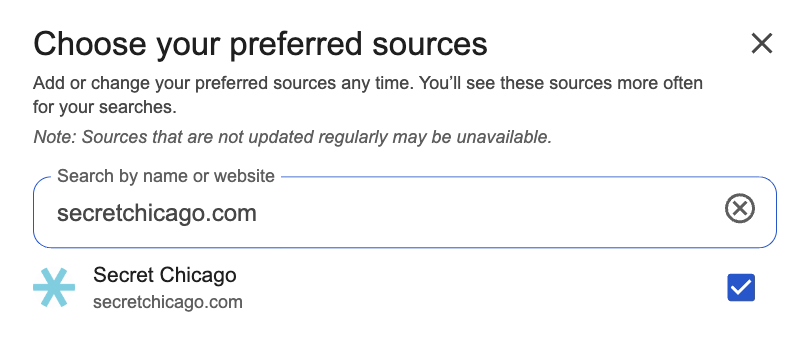 ¿Ya estás a bordo? Perfecto. Hay varias formas de añadir Secret Chicago como fuente preferida.