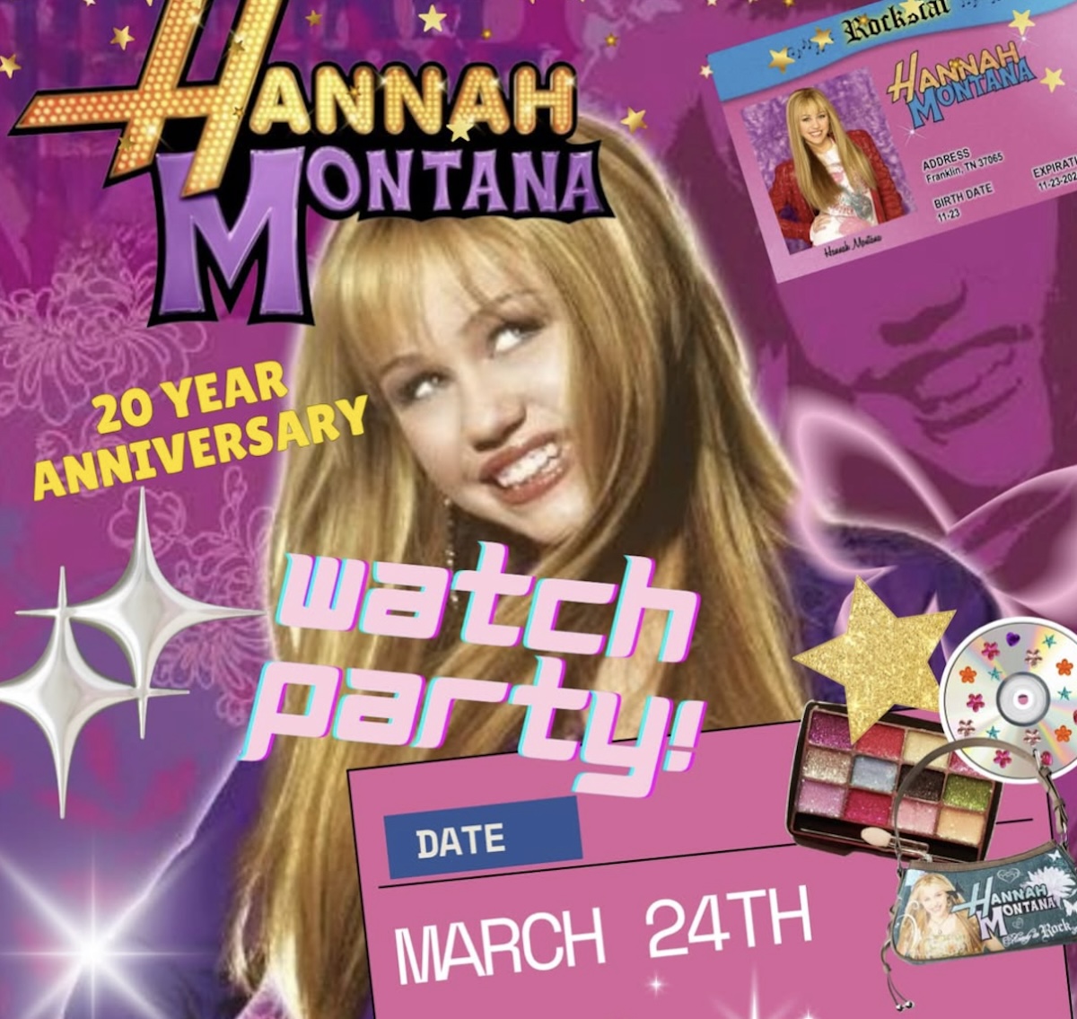 ¡Ponte tu mejor atuendo de Disney o Y2K y celebra el 20.º aniversario de Hannah Montana con trivial, puestos y una proyección de películas!