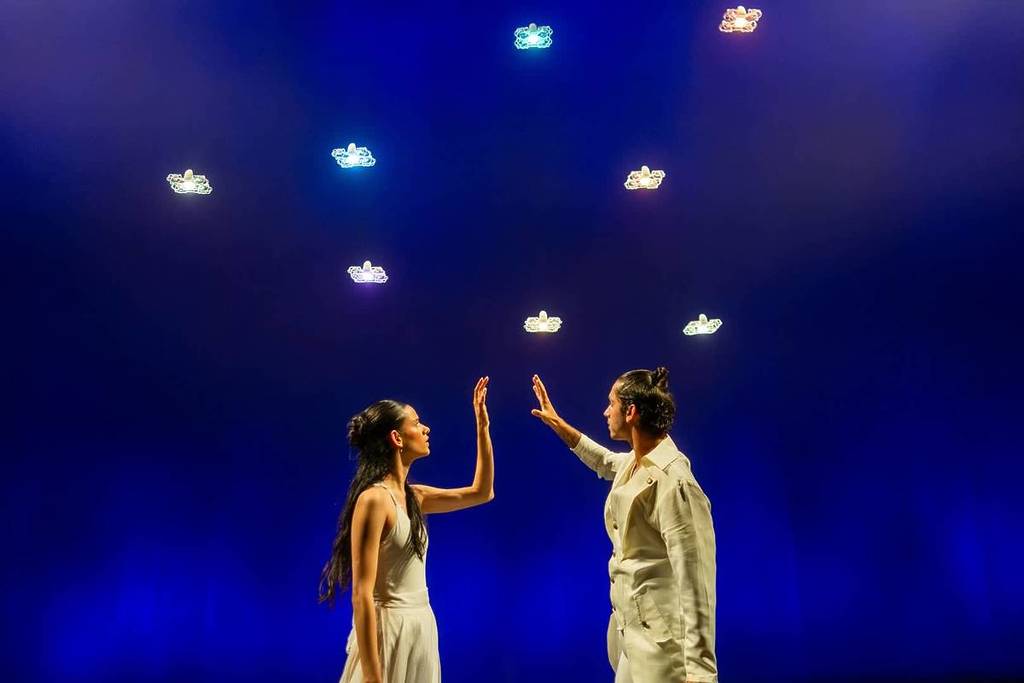 Once confined to practical uses in fields like agriculture and medicine, drones are now emerging as a dynamic artistic medium. In The Drone Saga, they glide through the air with the dancers, echoing each movement with uncanny accuracy. Their glowing forms pulse and shift in tandem with the choreography, crafting a story told through both light and motion. At times, they resemble a constellation of fireflies, casting an enchanting glow that transforms the stage into something otherworldly.